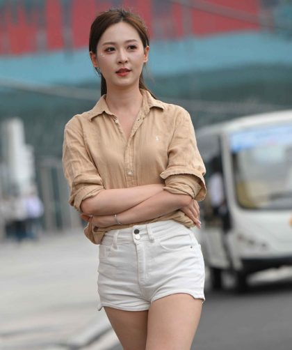 街拍-白色热裤小姐姐