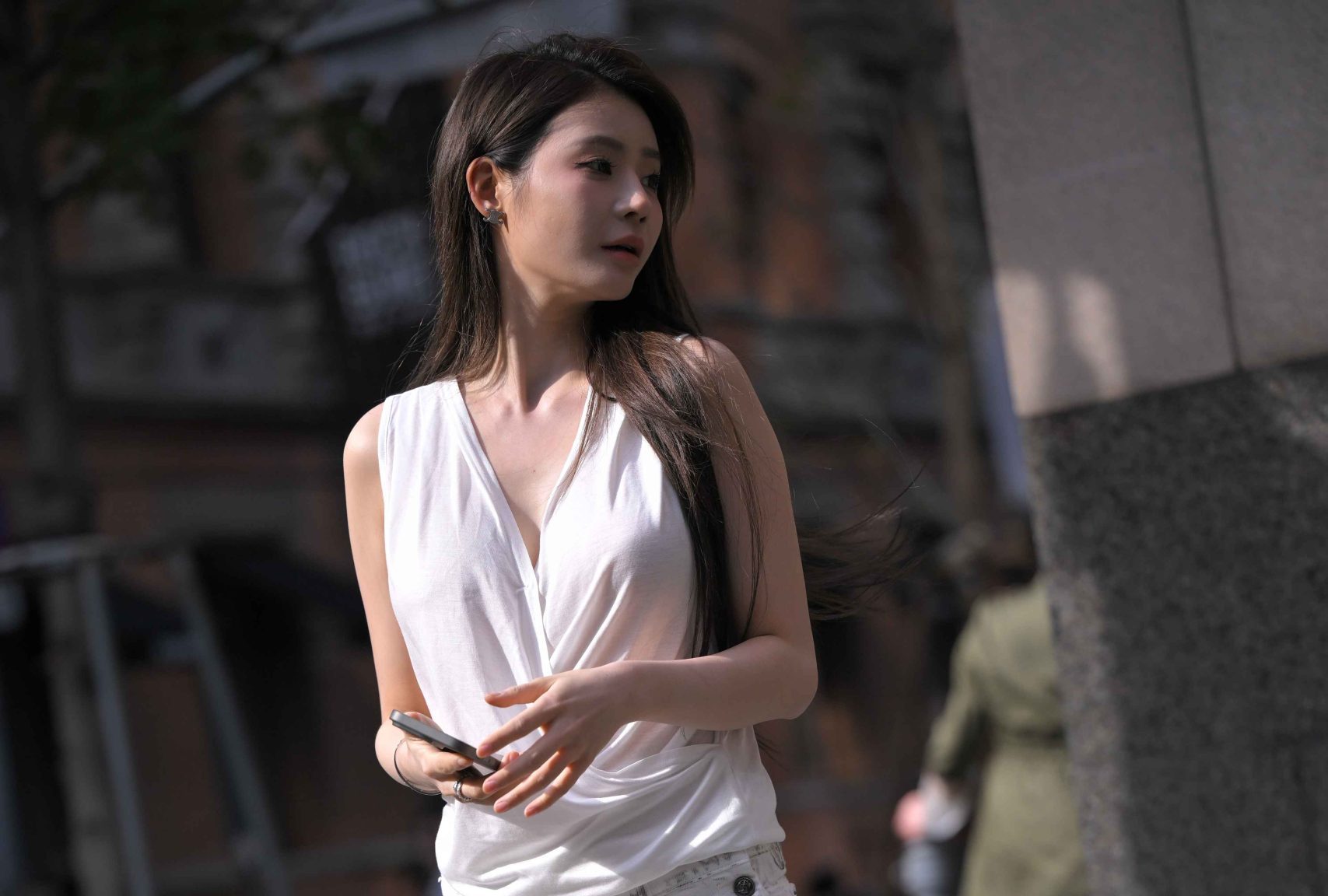 街拍-黑色紧身裤美女